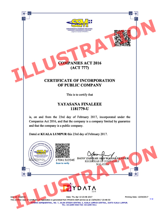 Ia merupakan dokumen sah yang mengesahkan syarikat anda telah diperbadankan secara rasmi (berdaftar) dengan SSM.