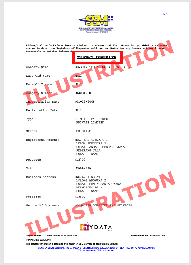 Ia berfungsi sebagai rekod sehenti yang menunjukkan identiti sah dan kewangan syarikat.