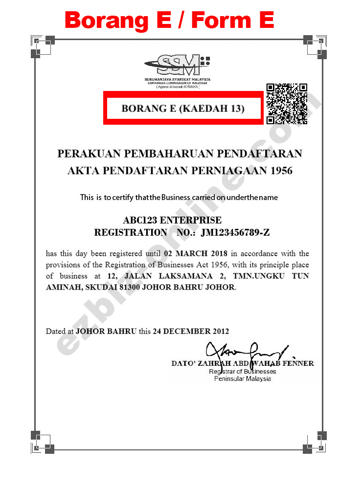 Borang E (Sijil Pembaharuan Perniagaan)• Dikeluarkan apabila anda memperbaharui pendaftaran perniagaan anda.